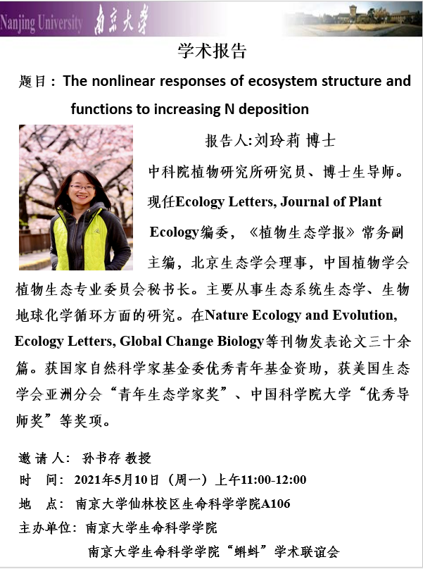 “蝌蚪”学术报告:The nonlinear responses of ecosystem structure and functions to increasing N deposition