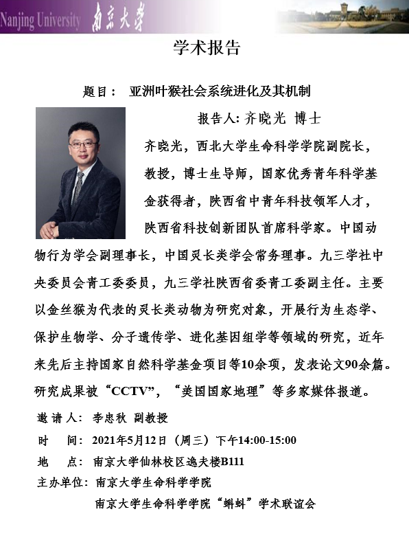 "蝌蚪"学术报告:亚洲叶猴社会系统进化及其机制