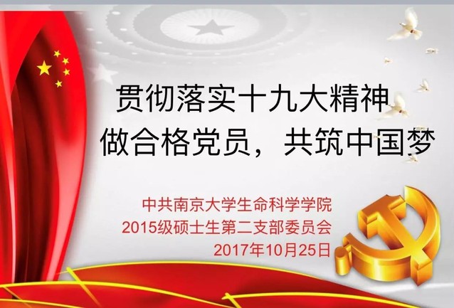 中国共产党第十九次全国代表大会为中国特色社会主义新时代举旗定向,圆满完成了历史赋予的重大使命,在举世关注的目光中胜利闭幕。为进一步贯彻落实十九大精神,太阳成集团tyc33455cc15级硕士生第二党支部于10月25日下午,生科楼A401举办了“贯彻落实十九大精神,做合格党员,共筑中国梦”的组织生活会。