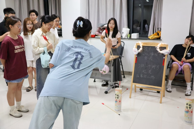 而在生科院的研究生们,还进行了“月圆人聚,共庆中秋”的游园会环节,同学们在“海底捞月” “中秋百问” “咬文嚼字”等游戏中激烈角逐,不仅展现了智慧和技巧,更体现了团队合作的力量。