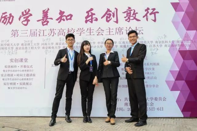 “在我刚进入大学的时候,我的学姐告诉我,大学重要的是,遇到什么样的人。”于是他进入员工会,参与多项员工活动,成长为一个善于交际,充满自信的南大人。与社会上商家、企业的沟通角力增强了他捕捉信息的能力,也磨平了他的棱角,让天之骄子更接地气、更懂为人。他带着校级项目走进大型企业的会议室,拿下无数赞助,也迎来了一个能言善辩、自信机敏的自己。他说在南大的四年对他来说更是一场历练,这所大学教会他“汝需寻向所爱”,也赋予了他跋山涉水、勇攀高楼的能力。