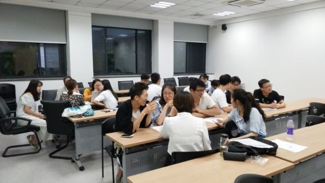 经过一段时间的讨论后,小组代表上台汇报分享讨论心得。