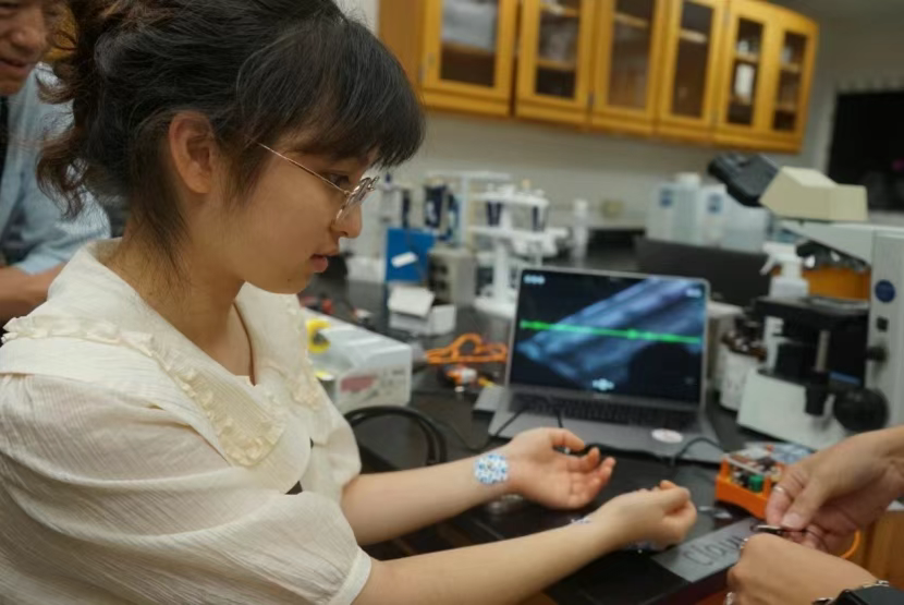 谈笑在波多黎各大学医公司神经生物学实验室体验EMG控制机械臂的实验