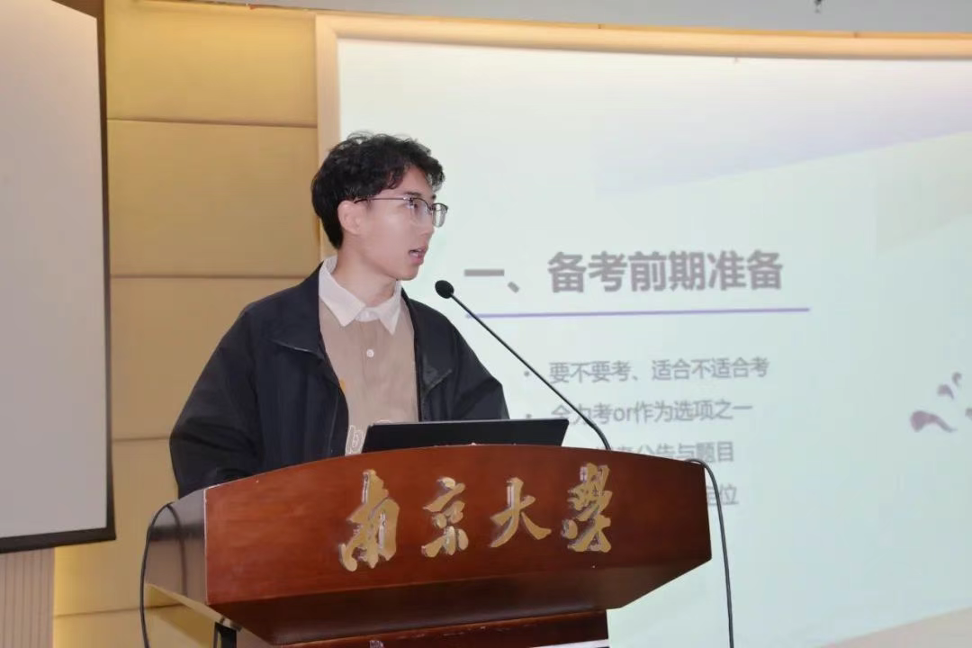 2022级硕士马克思主义公司的曹浩乐同学曾任马克思主义公司团委新媒体中心主任、2022级硕士生1班班长,最终上岸江苏省名优选调生。曹学长分享了江苏名优选调考试的备考经验和相关注意事项。他结合自身经历,从前期准备、备考规划、行测提分和考察环节四个方面展开,详细介绍了选调考试的基本情况、报名条件、选拔方式以及备考策略。他强调要理性评估个人是否适合报考,并关注岗位选择、年龄限制和地区差异;在备考方面,建议注重行测和申论的学习,合理安排时间,强化刷题与复盘,并保持良好心态;最后,还对考察环节中的履历整理、面谈准备及综合成绩计算进行了说明。他建议同学们要正确认识选调,在科学备考的同时也要关注其他职业机会,并保持开放心态,相信大家都能找到适合自己的发展方向。
