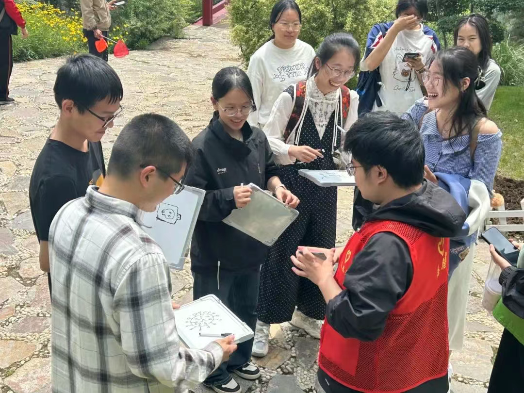 五月的晨光轻拂公园,两校学子怀揣期待汇聚于此。在主持人简要介绍规则后,全体同学各自组成跨校队伍,手持明信片,开启了这场充满挑战与欢笑的春日征程。