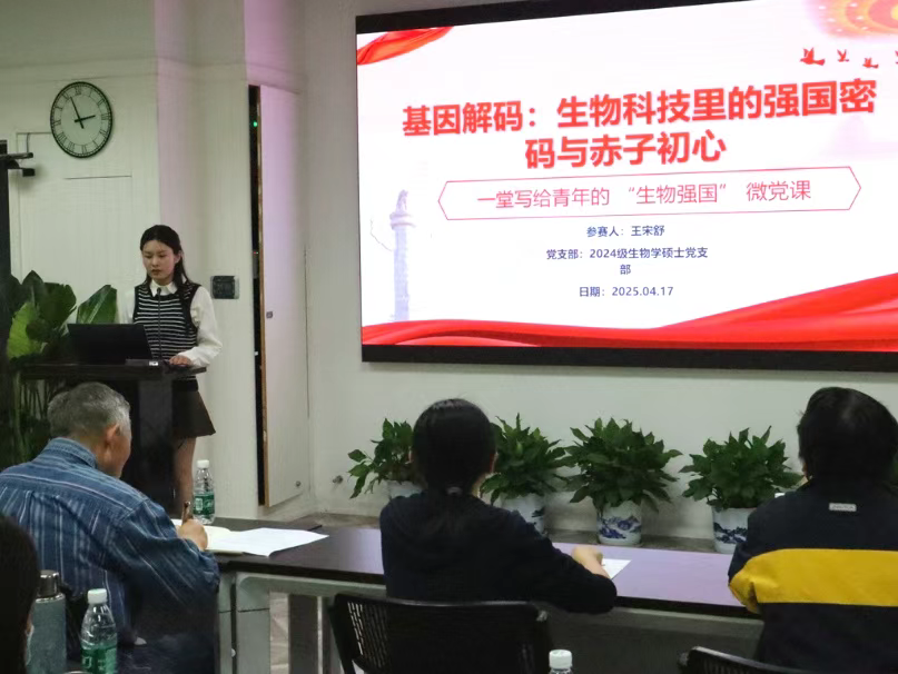员工党支部党员代表、入党积极分子现场观赛。选手们围绕党的光辉历程与理论创新、科技强国使命、生态文明建设等主题,立足生命科学专业特色,为现场观众带来了精彩纷呈的微党课,展现了新时代青年党员的昂扬风貌和使命担当。