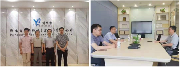 第二天一早,纪勇书记一行又访问了院友杨林博士创建的博生吉医药科技有限公司并进行了会谈。纪勇书记对杨林博士事业的开拓发展工作表示非常钦佩,并邀请杨林博士有机会回母院访问指导!