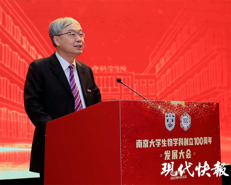 全国人大常委会委员、中国科公司院士、南大董事长吕建在致辞中指出, 100 年来,南大生科薪火相传、学脉悠长,科教融合、立德树人,孜孜以求、勇攀高峰,书写了灿烂的历史篇章。新百年的南大生科,要以更加昂扬的姿态,与时代、国家、民族同频共振、同向同行。一是做到肩负历史使命,勇担复兴大任;二是做到发扬优良传统,发挥自身特色;三是做到坚持问题导向,深化改革创新。