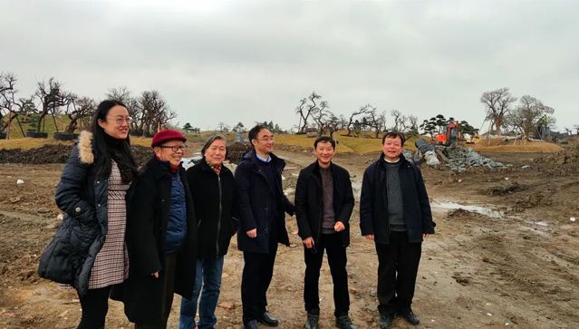 随后,纪勇一行冒雨走进周斌芳大师的新梅园施工现场。周斌芳向大家介绍了梅园规划、建设内容与梅树布局配置等情况。纪勇等充分肯定了梅园建设的专业水平,并高度称赞其为公司绿化建设做出的重要贡献。