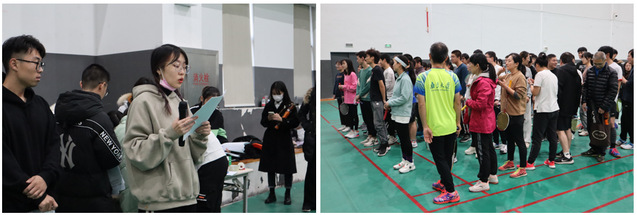 主持人宣读比赛规则、赛程及注意事项后,羽毛球赛正式开始。