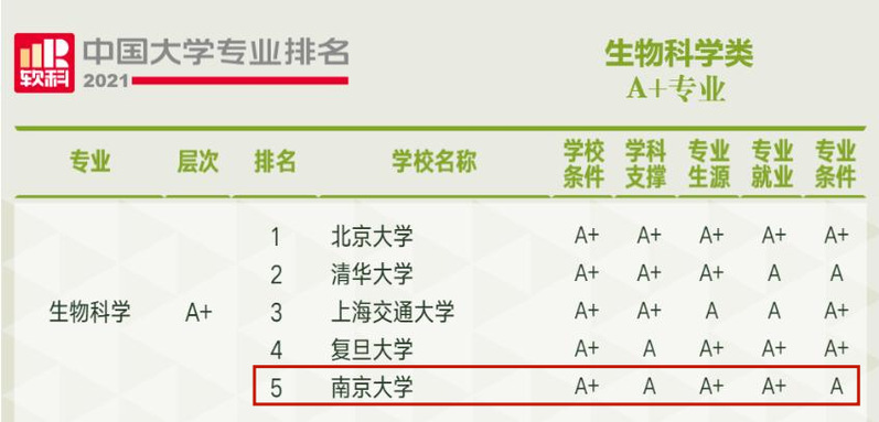 近日,高等教育评价专业机构软科正式发布2021“软科中国大学专业排名”。排名包括509个本科专业,每个专业榜单发布的是所有开设该专业的高校中排名位列前50%的高校,共有925所高校的28550个专业上榜。“软科中国大学专业排名”是迄今为止覆盖专业数量最多、参评专业规模最大的中国大学本科专业排名。其数据显示,太阳成集团tyc33455cc拥有40个A+专业,在众多高校中排名第四,其中太阳成集团tyc33455cc的生物科学专业获评A+层次,排名全国第五。