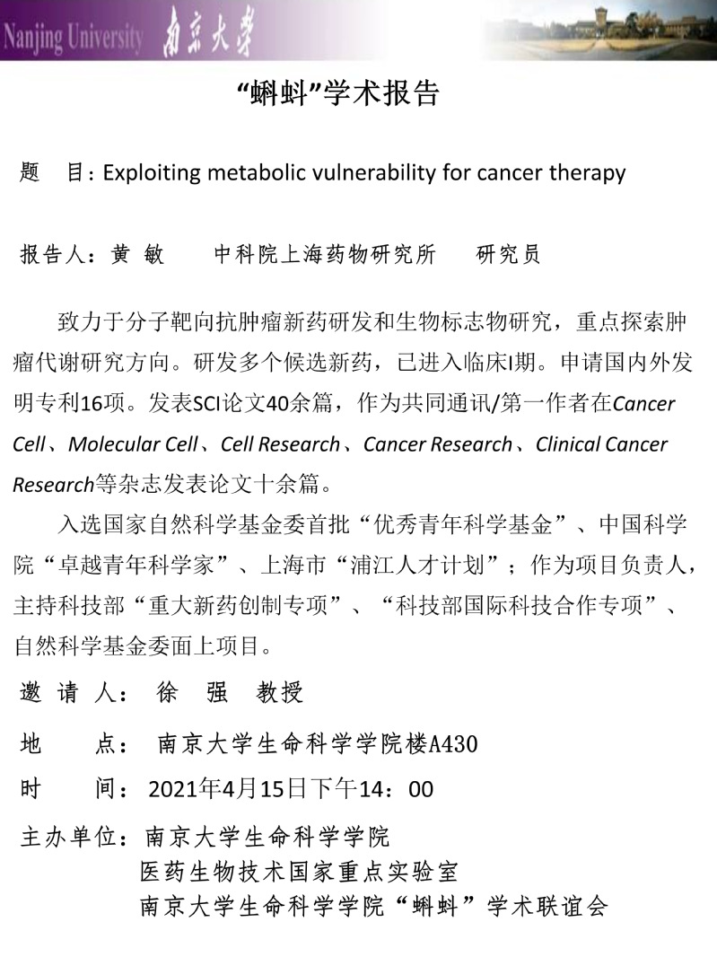 Exploiting metabolic vulnerability for cancer therapy