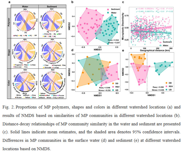 Dam construction affects the transportation, suspension, and deposition of MPs at different dam locations (upstream, reservoir, and downstream) by altering hydrodynamihas changed the migration process of MPs. The dams intercepted a large amount of MPs from upstream sediments in the reservoir but had no significant capturing effect on MPs in water. Unlike conventional contaminants, MPs have multiple morphological and compositional features (occurring in various colors, shapes, particle sizes, and polymer components), which have different ecological effects. Dam construction resulted in significant differences in the composition of sediment MPs at different locations in the dam, and these differences were formed mainly by differential vertical migration of MPs of different densities, shapes and sizes following hydrodynamic alterations (Fig. 2).