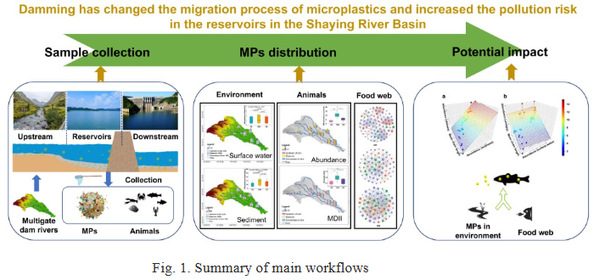 Professor Shuqing An's team has long been involved in research on river. The team investigated the characteristics and abundance of MPs in water, sediment and biological tissues in the vicinity of ten dams in the Shaying River basin to explore the spatial distribution of MPs in the environment and animals under the influence of dams and to disclose the effects of changes in MPs in the environment and food web structure on the MPs' accumulation in animals, so as to suggest hotspots of MPs exposure, migration processes and potential transfer pathways in the food chain in this type of watershed.