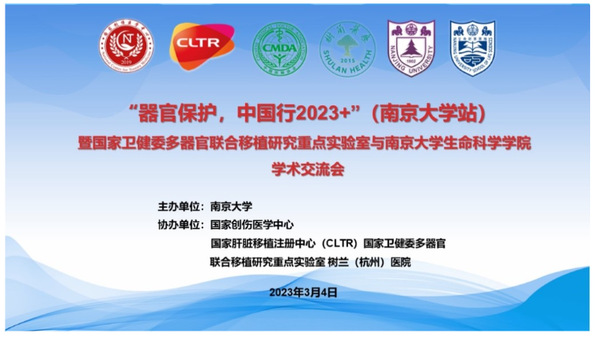 On March 4, 2023, “Organ Protection, China Journey 2023+!” (Nanjing University Station) and the academic exchange meeting between the Key Laboratory of Multi-Organ Joint Transplantation Research of National Health and Health Commission and School of Life Sciences of Nanjing University was successfully held in Nanjing, Jiangsu Province. The conference was hosted by the School of Life Sciences of Nanjing University, supported and co-organized by the National Trauma Medical Center, China Liver Transplantation Registry, the Key Laboratory of Multi-Organ Joint Transplantation Research of the National Health Care Commission, and Shulan (Hangzhou) Hospital.